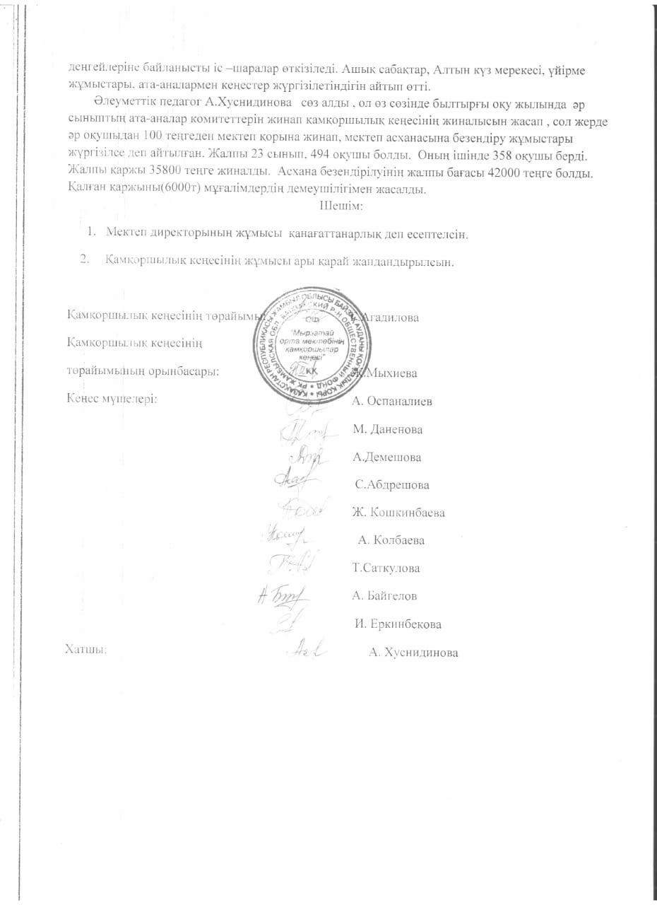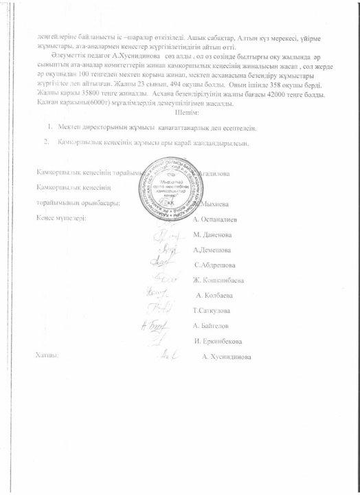 "Қамқоршылық кеңес" қоры жиналысының № 9 хаттамасы