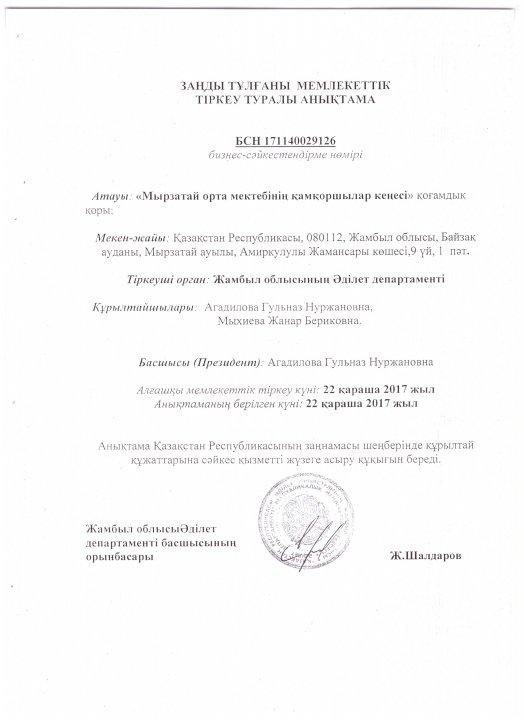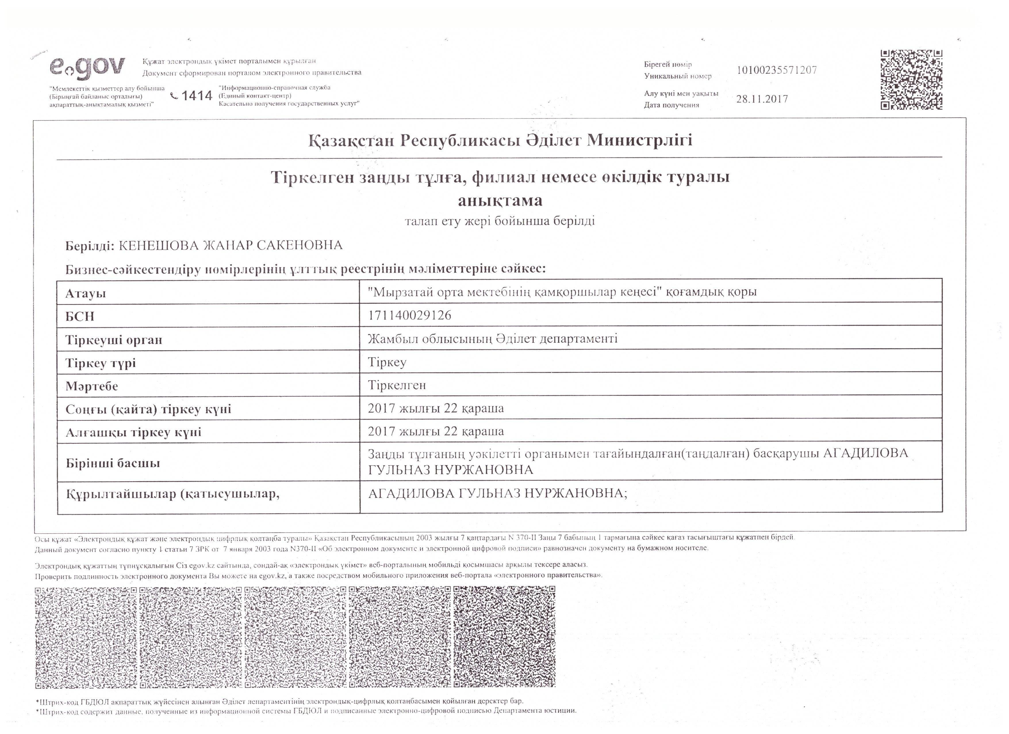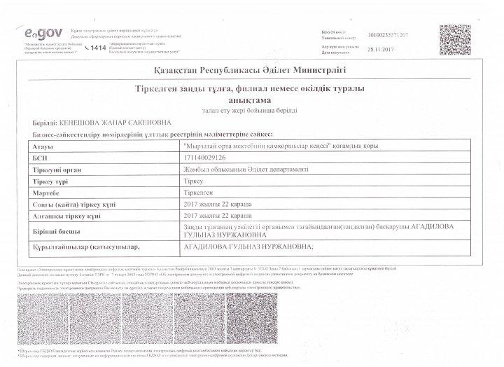 Заңды тұлғаны мемлекеттік тіркеу анықтама