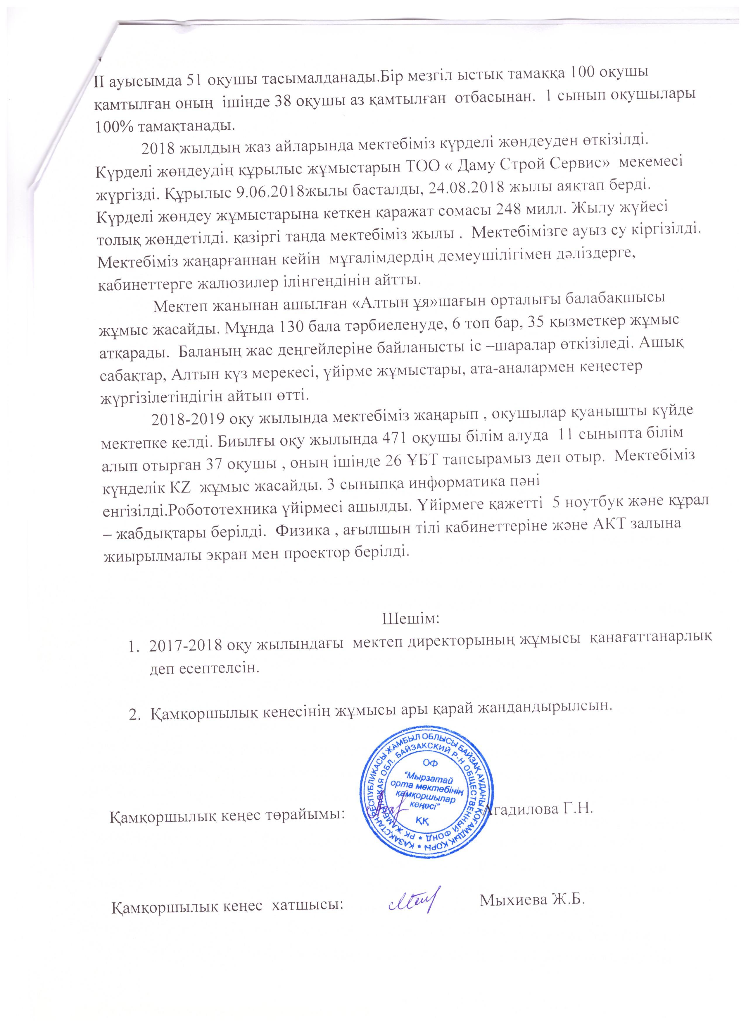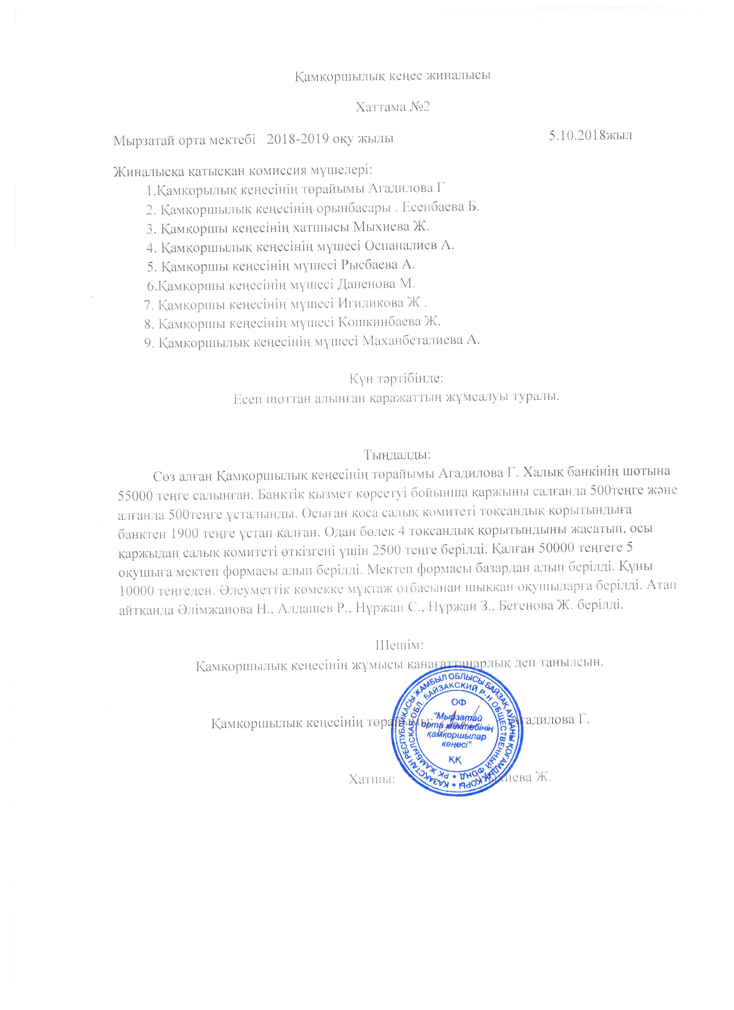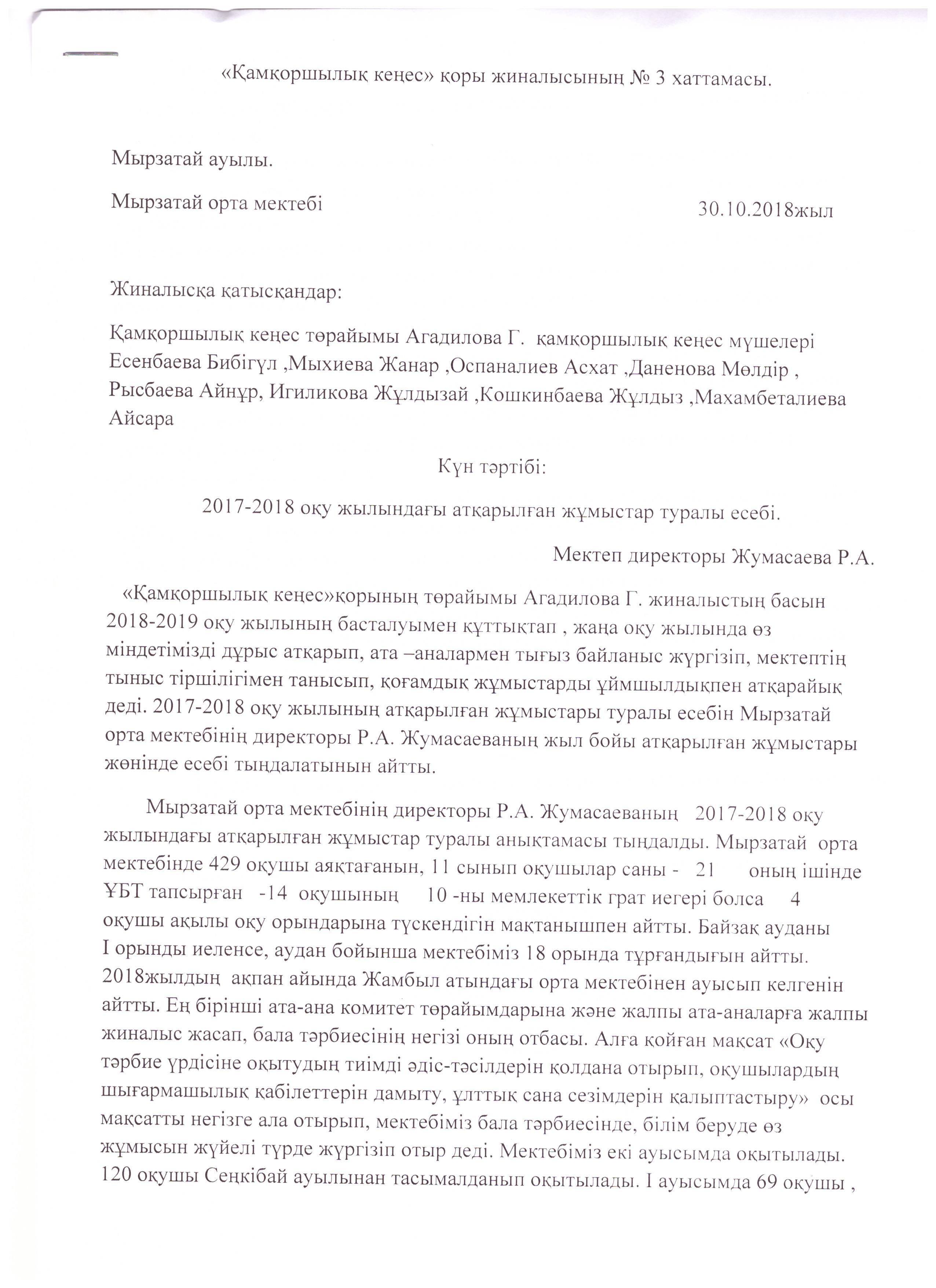 23 ноябрь 2018 0 1 2 3 4 5 Қамқоршылық кеңес Мырзатай орта мектебінің бірінші Қамқоршылық кеңес отырысы Мырзатай орта мектебінің екінші Қамқоршылық кеңес отырысы