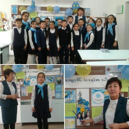 сүйіспеншіліктерін арттыру, әсемділікке, жауапкершілікке, елге,жерге, деген патриоттық сезімдерін ояту, елінің мұрасын жалғастырушы азамат болуға тәрбиелеу мақсатында 4А сынып жетекшісі Кулзахира Джантаева "Ел тірегі - Тәуелсіздік" тақырыбында ашық сабақ өткізіді.