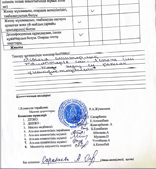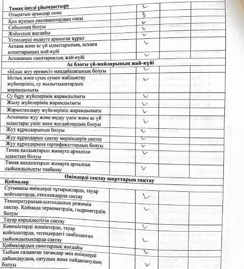 » Тамақтану сапасын бақылау бойынша толтырылған АКТ