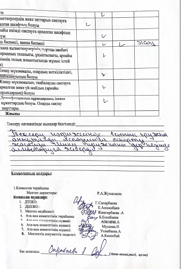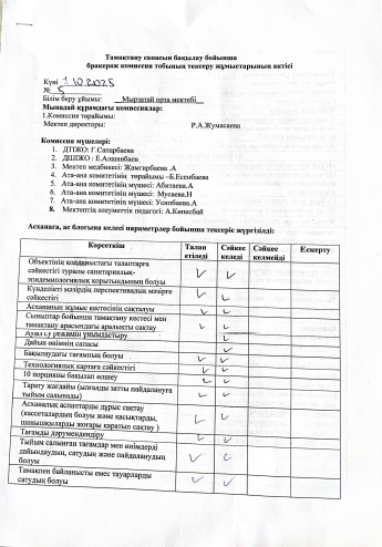 Тамақтану сапасын бақылау бойынша толтырылған АКТ