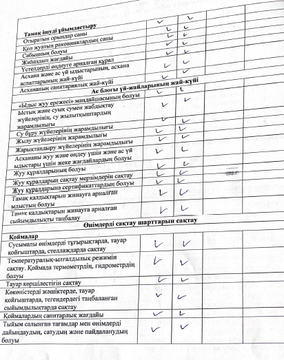 » Тамақтанудың сапасын бақылау бойынша АКТ