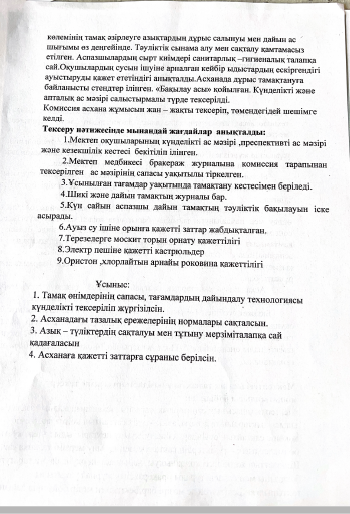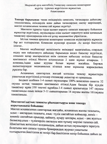 Тамактандырудың сапасына монитонг жүргізуін тексерудің қорытындысы.