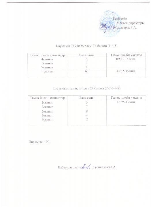 » Асханаға мектеп әкімшілігінен құрылған кезекшілік кестесі