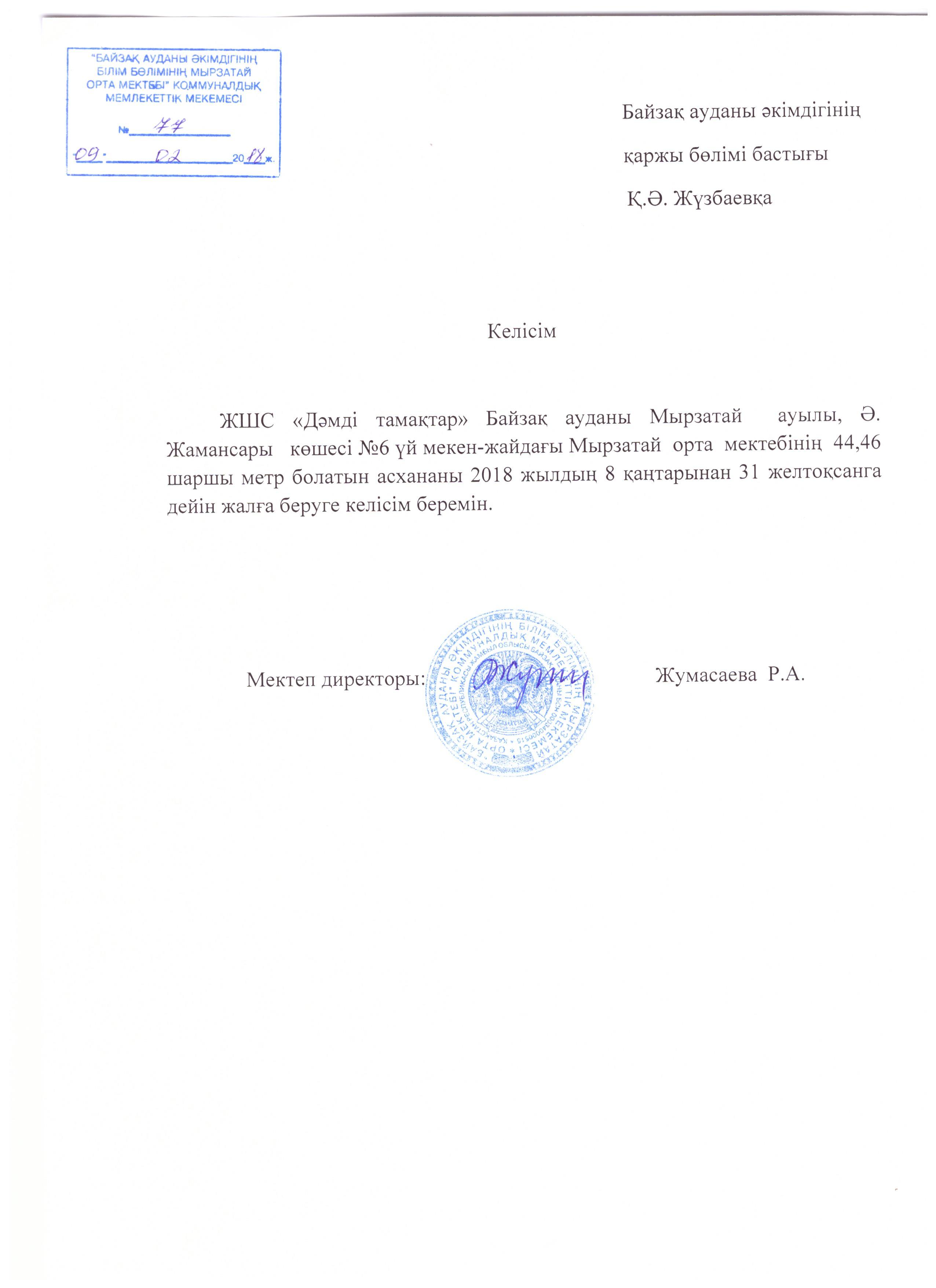 Тамақтандыру келісім шарты