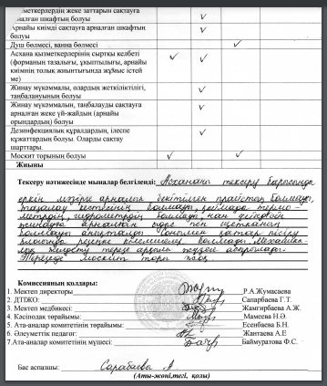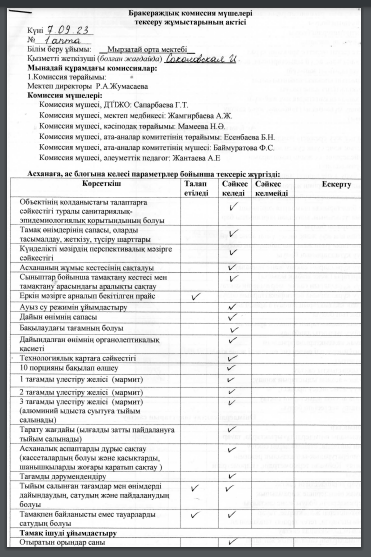 Бракераждық комиссия мүшелері тексеру жұмыстарының актісі